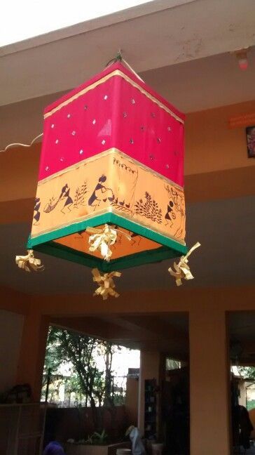 दाराच्या भोवती लावण्यासाठी सध्या पैठणीच्या कापडाचे कंदील मिळतात.