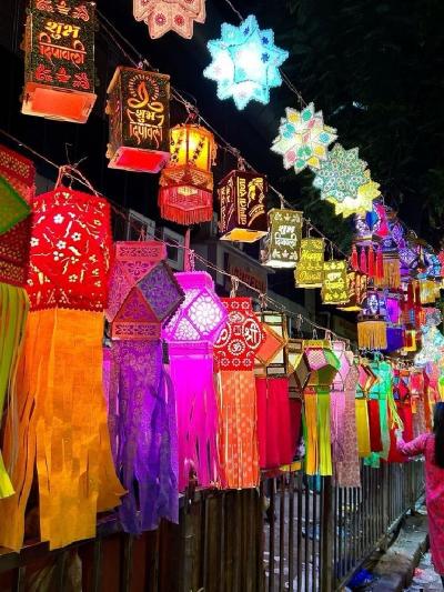 बाजारात सध्या कमळाच्या फुलाचे कापडाचे कंदील देखील मिळतात.