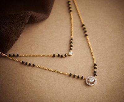 या मंगळसूत्रात आपल्याला दोन चेन पाहायला मिळतील. त्यात काळे मणी आणि चेन असेल. एकात छोटा डायमंड आणि दुसऱ्यात गोलाकारमध्ये डायमंड पाहायला मिळेल.