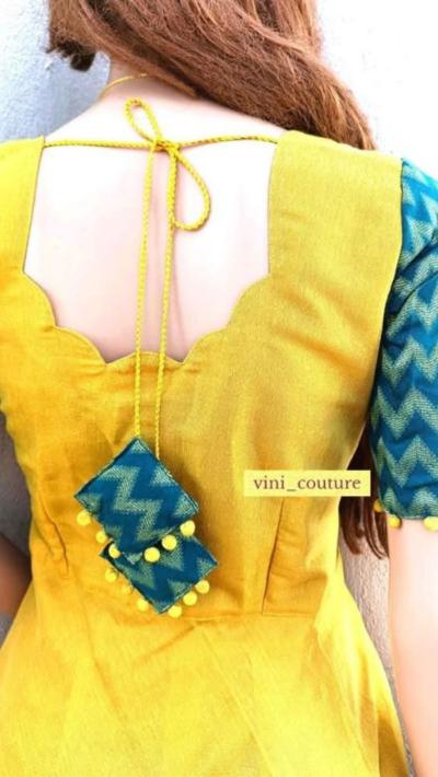 आपल्या सूटच्या मागच्या गळ्याला फॅन्सी आणि स्टायलिश टच द्यायचा असेल तर बॅक पॅटर्न हा चांगला पर्याय आहे. याची स्टायलिश नेकलाइन आणि स्ट्रिंग खूप विंटेज आणि क्लासी लूक देतात.