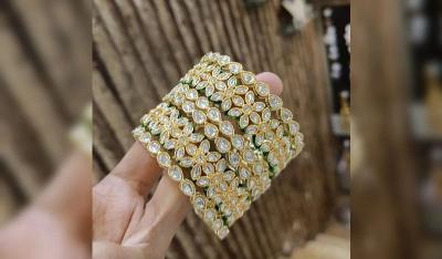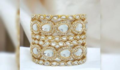 कुंदन बांगड्यांचा सेट हा सगळ्या कपड्यांवर आणि प्रत्येक वयोगटातील महिलेवर शोभून दिसतो. यामध्ये काचेच वर्क केलेले असते.