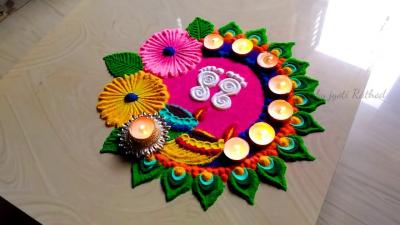 लक्ष्मी पुजनाच्या दिवशी रांगोळ्या काढताना त्यात गुलाबी, लाल किंवा पिवळ्या रंगाचा वापर करा.