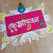 ओम किंवा शुभ-लाभ ही चिन्ह पांढऱ्या रंगानं काढून त्याच्या आजूबाजूला साध्या भौमितिक डिजाईन्स काढा.