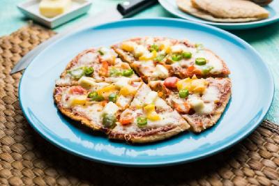 तव्यावर चपाती तूप लावून कुरकुरीत करा. पिझ्झा सॉस/केचप लावा. आवडीनुसार भरपूर भाज्या आणि वरून चीज किसून घाला. झाकण ठेवून चीज विरघळेपर्यंत गरम करा.
