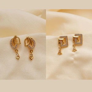 सोन्याच्या कानातल्यांमध्ये तुम्हाला स्टोन डिजाईन, छोटे लटकन असे बरेच ऑपश्न मिळतील. हे वापरायला सोयीस्कर असतात.