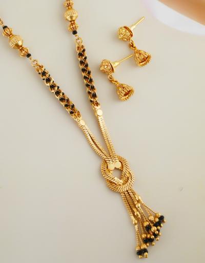 छोट्या मंगळसुत्रावर कानातल्यांचा सेट अगदी सुंदर दिसतो. मंगळसुत्र आणि कानातल्यांचा सेट तुम्ही एखाद्या समारंभासाठीही घालू शकता.