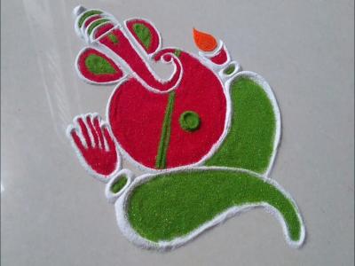 ही एक अतिशय वेगळी आणि खूपच कमी वेळात होणारी गणपतीची रांगोळी पाहा. ही रांगोळी अगदी सहज काढता येण्यासारखी आहे.