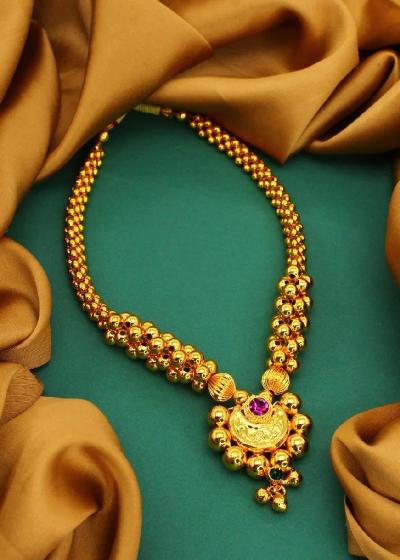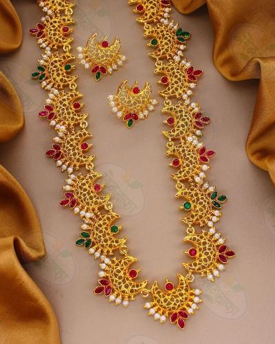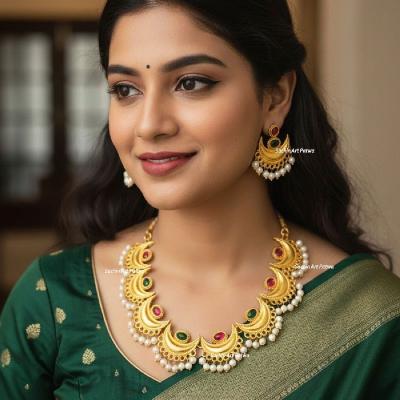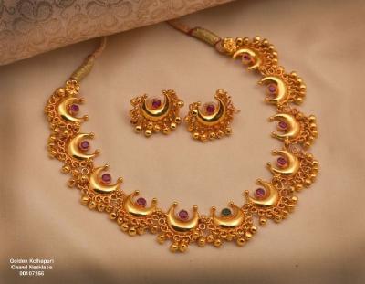 चंद्राच्या कोरीसारखा नाजूक आणि आकर्षक आकार असलेले हे नेकलेस साडी किंवा नऊवारीवर अत्यंत देखणे दिसतात आणि संपूर्ण लूकला रॉयल टच देतात.