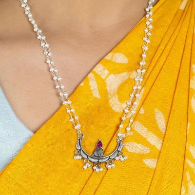 ऑक्सिडाईज्ड चंद्रकोर नेकलेस ट्रेंडी आणि इंडो-एथनिक लूकसाठी तरुणींमध्ये लोकप्रिय. हलक्या साड्यांवर किंवा फ्युजन आउटफिटवरही शोभतो.