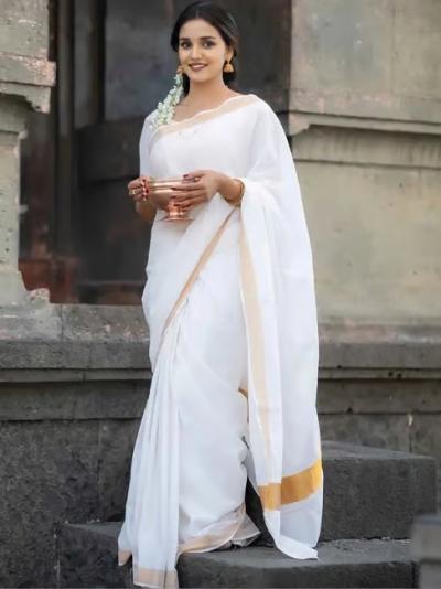 आजकाल पांढऱ्या साडीवर लाल, हिरव्या किंवा पिवळ्या रंगाचे काठ असलेली क्लासिक कॉम्बिनेशन्स खूप लोकप्रिय आहेत. यामुळे परंपरेसोबतच तुमचा फॅशन सेन्सही जपला जातो.