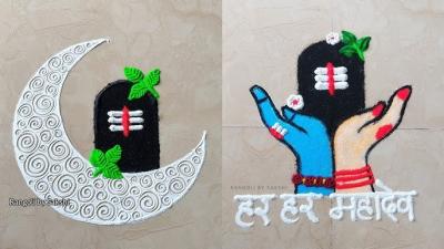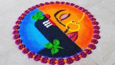 जर तुम्हाला थोडी मोठी रांगोळी काढायची असेल तर शिव-पार्वतीचे अर्धनारीश्वर रूप किंवा केवळ शंकराचा चेहरा काढणं खूपच आकर्षक दिसतं.