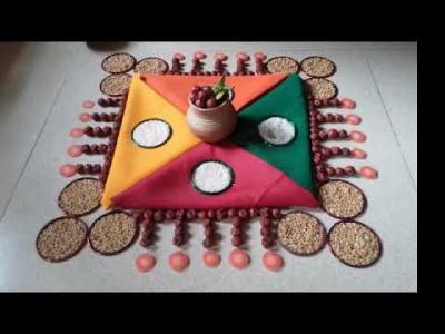त्याऐवजी संक्रांतीच्या हळदी- कुंकू कार्यक्रमासाठी तुम्ही वाणवसाचं साहित्य वापरून एकदम वेगळ्या रांगाेळ्या काढू शकता.