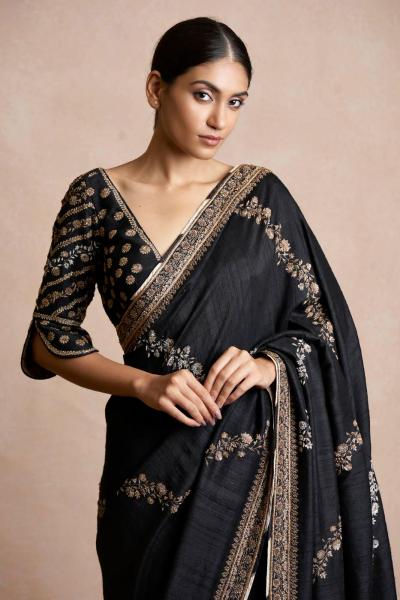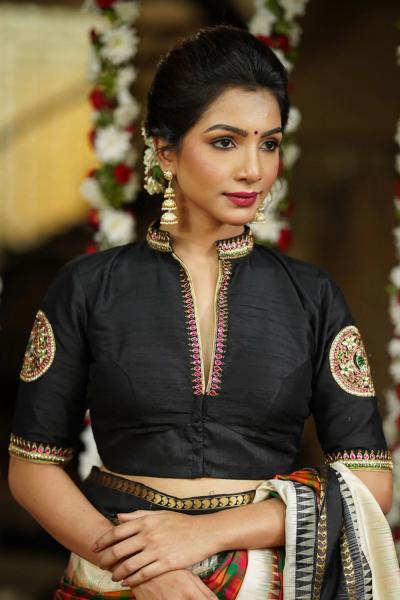 काळ्या साडीवर घालण्यासाठी तुम्हाला रेडिमेड ब्लाऊजसुद्धा उपलब्ध होतील.