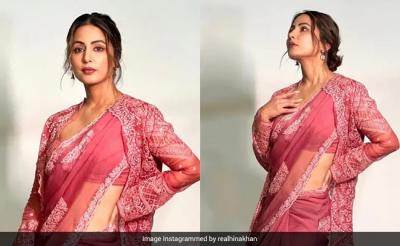 अभिनेत्री हिना खानचा हा एक साडी विथ जॅकेटमधला सुंदर लूक पाहा...