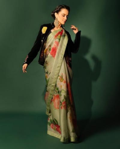 अशी एखादी शिफॉन किंवा ऑर्गेंझा किंवा फ्लोरल प्रिंटची साडी असेल तर त्यावर असं जॅकेट खूप छान वाटेल. ऑफिसच्या एखाद्या फॉर्मल कार्यक्रमासाठीही तुम्ही हा लूक करू शकता.