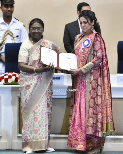 राष्ट्रीय पुरस्कार स्वीकारताना मानसी पारेखने नेसली ‘साडी विथ जॅकेट’-बघा फोटो-करा दिवाळीत स्पेशल लूक