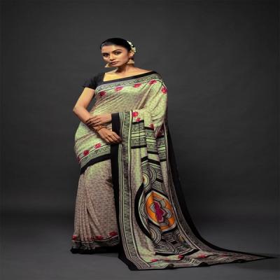 शिफॉन, जॉर्जेट प्रकारातही मंडाला प्रिंट साड्या मिळतात. त्याही तुम्ही ऑफिसमध्ये तसेच एखाद्या लहानशा समारंभात नेसू शकता.