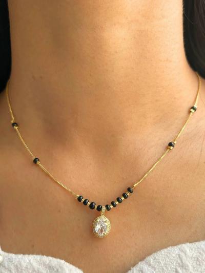 सिंगल स्टोन आणि काळेमणी मंगळसूत्रात अगदी उठून दिसतात.