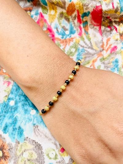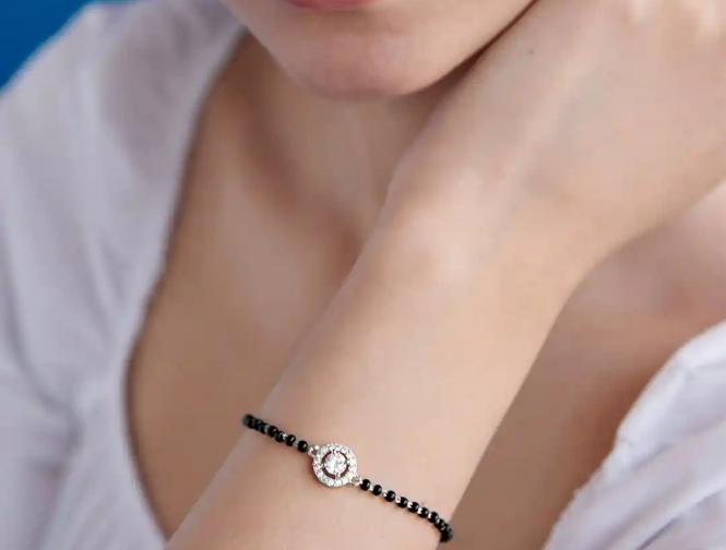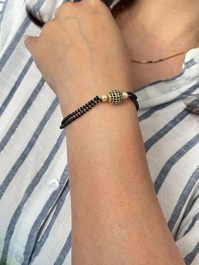 नाजूक आणि बारीक साखळीवर काळे मणी आणि मध्यभागी छोटेसे डायमंड किंवा सोन्याचे पेंडंट (Pendant) असलेले ब्रेसलेट्स रोजच्या वापरासाठी खूप पसंत केले जात आहेत.
