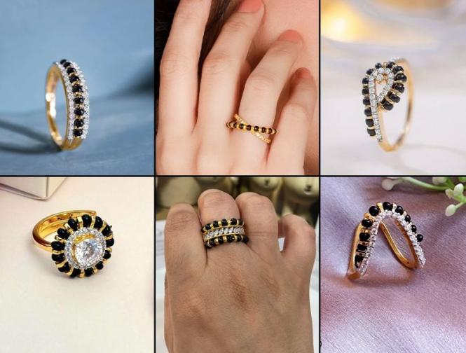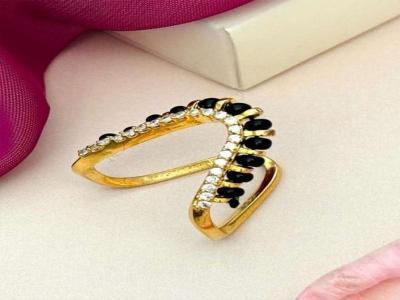 जर आपल्याला नेहमीच्या वापरासाठी गळ्यात मंगळसूत्र घालायचे नसेल, तर आपण हातात काळ्या - सोनेरी मण्यांची मंगळसूत्र स्टाईल अंगठी देखील घालू शकता. तुम्हांलाही बोटांत घालण्यासाठी मंगळसूत्र डिझाईन्सच्या ट्रेंडी अंगठ्या ट्राय करायच्या असतील तर तुम्हाल हे लेटेस्ट पॅटर्न पाहून आयडिया मिळेल.