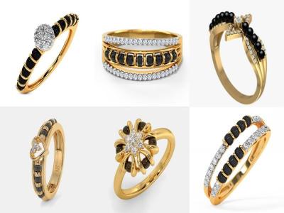 जर आपल्याला मंगळसूत्रातील काळे, सोनेरी मणी आणि डायमंड्स आवडत असतील तर आपण या तिघांचे कॉम्बिनेशन असणारी अशा डिझाईन्सच्या अंगठीची निवड करू शकतो.