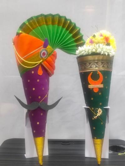 अशा पद्धतीने फेटा, नथ, चंद्रकोर आणि गजरा लावून तुम्ही साखरपुडे तयार करू शकता आणि दोन्ही एकत्र करूनच नववधूला देऊ शकता.