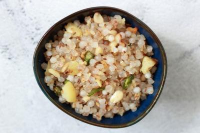 साबुदाणा भिजवताना पूर्णपणे बुडेल आणि त्यावर फक्त अर्धा इंच पाणी राहील इतकंच पाणी घाला. जास्त पाणी घातल्यास खिचडी चिकट होते.