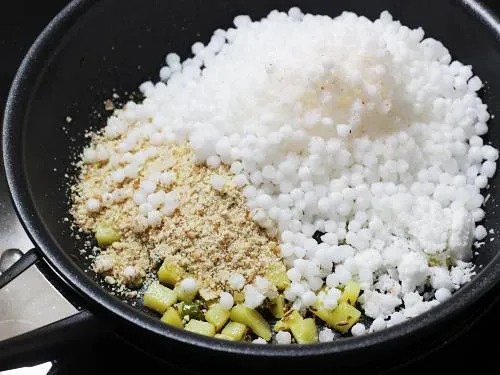 कढईत साबुदाणा घातल्यावर तो हलक्या हातानं आणि सतत हलवत मध्यम आचेवर परतवून घ्या.