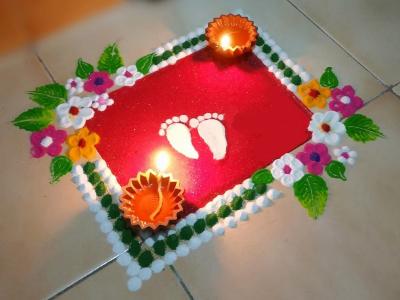 या सुंदर रांगोळ्या लक्ष्मी देवीच्या स्वागतासाठी काढल्या जातात.