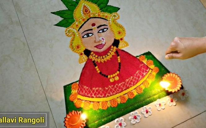 या रांगोळ्या काढताना लाल, पिवळा, हिरवा, गुलाबी अशा तेजस्वी, आकर्षक रंगांचा वापर केला जातो.