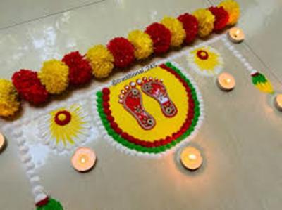 मार्गशीर्ष गुरुवारी लक्ष्मीची पूजा केली जाते. त्यामुळे त्यावेळी अशी लक्ष्मीची पावलंही तुम्ही काढू शकता. ही रांगोळी दिसतेही छान आणि शिवाय ती काढण्यासाठी खूप वेळही लागत नाही.
