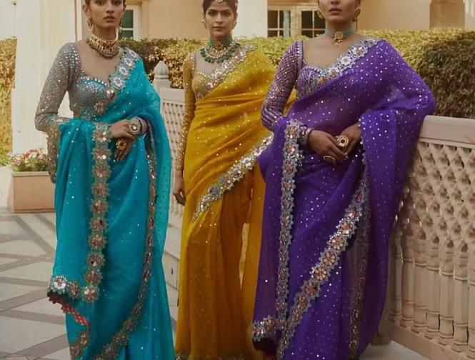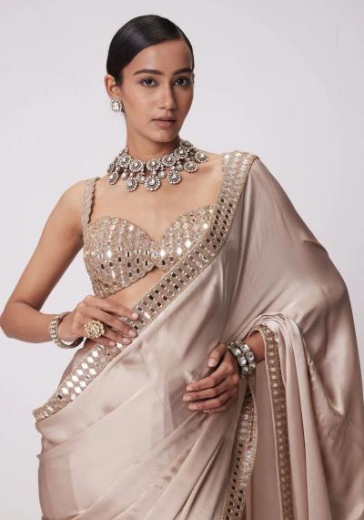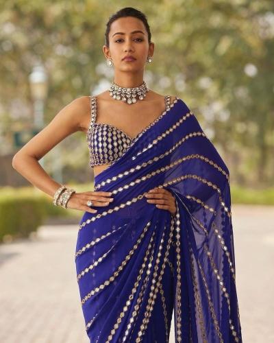 रात्रीचे फंक्शन, नाईट पार्टीसाठी मिरर वर्क साड्या उत्तम ठरतात, कारण दिव्यांच्या प्रकाशात आरसे चमकतात आणि तुमचा लूक इतरांपेक्षा वेगळा आणि सुंदर दिसतो.