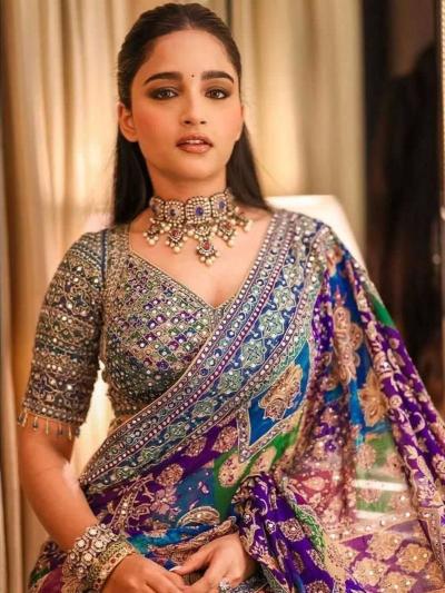 पारंपरिक समारंभांसाठी सिल्क साड्यांवर हाताने केलेले मिरर वर्क अत्यंत रॉयल आणि क्लासी दिसते.