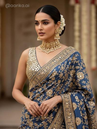 जर साडी साधी असेल, तर त्यावर संपूर्ण मिरर वर्क असलेला ब्लाऊज खूप उठून दिसतो.