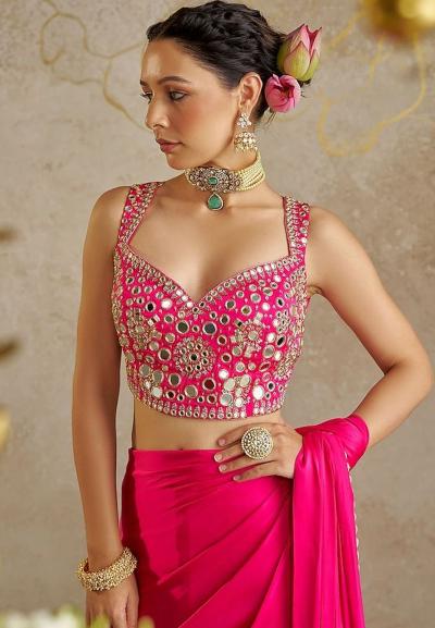 कोणताही सण, लग्न, हळदीचा कार्यक्रम असो किंवा पार्टी; विशेष (Mirror work saree & blouse designs) आऊटफिट्मध्ये उठून दिसण्यासाठी स्त्रिया नेहमीच काहीतरी खास करतात. सध्या फॅशन विश्वात 'मिरर वर्क' असलेल्या साड्या खूपच लोकप्रिय आणि ही ट्रेंडिंग फॅशन झाली आहे. खास करून मिरर वर्क फॅन्सी साडी आणि ब्लाऊज सध्या खूप ट्रेंडमध्ये आहे. साडीच्या पदरावर, काठावर किंवा ब्लाऊजवर नक्षीदार पद्धतीने लावलेले छोटे-छोटे आरसे कपड्यांना एक वेगळीच चमक आणि आकर्षक लुक देतात.