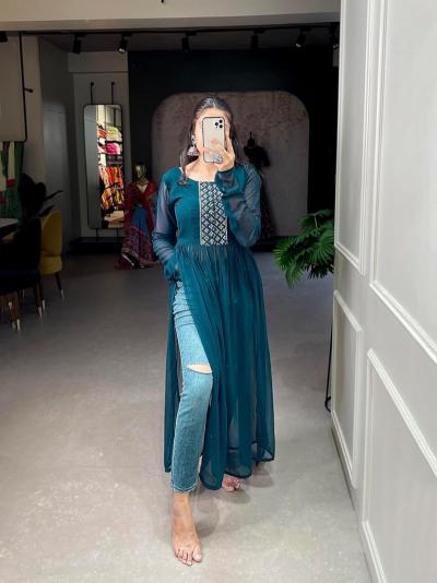 स्मार्ट लूक हवा असेल तर आपण जॅकेट स्टाईल कुर्तीची निवड करु शकतो. हे आपण पलाझोसोबत घालू शकतो.