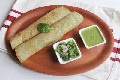मुगडाळीचा डोसा:- मुगडाळीचा डोसा करण्यासाठी अर्धा कप मोड आलेले हिरवे मूग, पाव कप तांदळाचं पीठ, पाव कप रवा, कोथिंबीर, किसलेलं आलं, बारीक चिरलेला कांदा, मिरची , मीठ आणि तेल घ्यावं. मोड आलेले मूग थोडं पाणी घालून बारीक वाटावेत. त्यात तांदळाचं पीठ, रवा घालावा. आवश्यकतेनुसार पाणी घालून मिश्रण सरसरीत करुन घ्यावं. त्यात चिरलेला कांदा, मिरची, किसलेलं आलं आणि मीठ घालून मिश्रण चांगलं मिसळून घ्यावं. तवा तेल लावून् गरम करुन त्यावर डोसे घालून ते दोन्ही बाजुंनी भाजून घ्यावेत.