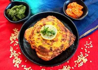 मुगडाळीचा पराठा:- मुगडाळीचा पराठा करण्यासाठी पाऊण कप मुगाची डाळ, 3 चमचे तेल, 1 चमचा तिखट, 1 चमचा हळद, चिमूटभर हिंग, 1 चमचा जिरे, 2 कप कणिक आणि मीठ घ्यावं. 15 मिनिटं डाल भिजवावी. नंतर ती निथळून घ्यावी. कढईत एक कप पाणी घालावं. त्यत भिजवलेली मूग डाळ घालावी. झाकण ठेवून डाळ शिजवावी. डाळीतलं पाणी उडून जाईपर्यंत डाळ शिजवावी. नंतर कढईत तेल गरम करावं. त्यात जिरे घलावेत. शिजवलेली डाळ घालावी. ती परतून त्यात लाल तिखट, हिंग, हळद घालून 5 मिनिटं ती परतून घ्यावी. नंतर गॅस बंद करुन डाळीचं मिश्रण गार होवू द्यावं. मिश्रण गार होईपर्यंत कणकेत मीठ घालून पीठ मळून घ्यावं. पीठ मऊसर मळावं. ते जास्त सैल किंवा घट्ट नसावं. पीठ मळून ते 15 मिनिटं सेट होवू द्यावं. पिठाचे दोन छोटे गोळे घेऊन त्यांच्या पाऱ्या लाटून घ्याव्यात. एका पारीवर मुगाच्या डाळीचं मिश्रण पसरवून घालावं. त्यावर दुसरी पारी ठेवून कडा बंद कराव्यात. हलक्या हातानं पराठा लाटावा. तव्यावर तेल लावून दोन्ही बाजूंनी खरपूस भाजून घ्यावा.