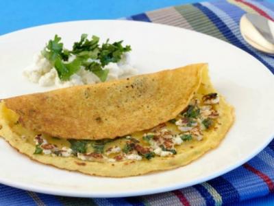 मुगाच्या डाळीचा चिला:- मुगाच्या डाळीचा चिला करण्यासाठी 200 ग्रॅम मूग डाळ, 50 ग्रॅम फ्रोझन वाटाणे, 5-6 लसणाच्या पाकळ्या, 2 हिरव्या मिरच्या, मीठ, हळद, पाणी, कांदा , कोथिंबीर, पाव चमचा सोडा, 3-4 चमचे तेल, मीठ तर सारणासाठी 4 मोठे चमचे किसलेलं पनीर, 2 हिरव्या मिरच्या, 1 कांदा, 1 लिंबाचा रस, अर्धा चमचा चाट मसाला आणि मीठ घालावं. मुगाची डाळ 2 तास भिजवून घ्यावी. नंतर आलं, लसूण, मिरची, मीठ, हळद , डाळ आणि थोडं पाणी घालून मिश्रण वाटून घ्यावं. मिश्रण सरसरीत असावं. त्यात चिरलेला कांदा, भरडून घेतलेले वाटाणे घालावेत. मिश्रण नीट हलवून फ्रिजमध्ये एक तास ठेवावं. तासाभरानं ते बाहेर काढून त्यात सोडा घालावा. मिश्रण हलवून घ्यावं. तवा गरम करावा. त्यावर थोडं तेल लावावं. त्यावर मुगाच्या डाळीचं मिश्रण घालावं. त्यावर पनीर, हिरव्या मिरच्या, कांदा, चाट मसाला आणि मीठ घातलेलं सारण भुरभुरुन पसरुन घालावं. तव्यावर झाकण ठेवून पॅनकेकप्रमाणे त्याची खालची बाजू सोनेरी रंगावर शेकून घ्यावी.