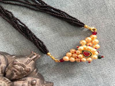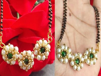 मंगळसूत्राच्या वेगवेगळ्या प्रकारच्या डिझाईन्समध्ये एक पॅटर्न सध्या खूप लोकप्रिय ठरत आहे, तो म्हणजे मोती डिझाईन मंगळसूत्र.