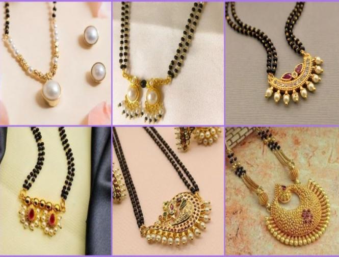 जर तुम्हांला नेहमीच्या पारंपरिक पॅटर्नमधील पेंडंट आणि भोवती मोत्यांचे नाजूक वर्क असणारे अशा डिझाईनचे भरीव मंगळसूत्र हवे असेल तर अशा अनेक डिझाईन्सचे मंगळसूत्र उत्तम पर्याय आहे.