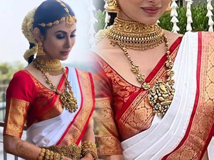 1 / 11मौनी रॉय (Mauni Roy) आणि सूरज नांबियार (Suraj Nambiar) यांच्या लग्नाचे फोटो सोशल मीडियावर चर्चेत आहेत. दक्षिण भारतीय वधू बनलेली मौनी रॉय या फोटोंमध्ये खूपच सुंदर दिसत आहे. (Wedding photos of Mauni Roy and Suraj Nambiar) प्रत्येकाला मौनीचा पारंपारिक दक्षिण भारतीय वधूचा लुक आवडला असून तिच्या ड्रेसअपपेक्षा तिच्या दागिन्यांनी (Temple jewellery) सर्वांचे लक्ष वेधून घेतले आहे.2 / 11मौनी रॉयने लग्नात पांढरी, लाल काठांचे कॉम्बिनेशन साडी घातली होती. (Mouni Roy south indian bride) ज्यामध्ये तिने फॅन्सी किंवा आधुनिक दागिन्यांऐवजी टेम्पल ज्वेलरी परिधान केली होती. अनेकांच्या मनात त्यांच्या दागिन्यांबाबत अनेक प्रश्न आहेत. म्हणूनच तुम्हाला टेम्पल ज्वेलरीचा इतिहास आणि खासियत सांगणार आहोत. (Temple jewellery)3 / 11टेम्पल ज्वेलरी हे पारंपरिक दागिने मानले जातात. (Mouni roy wedding jewellery) या प्रकारच्या दागिन्यांचा संबंध दक्षिण भारतीय संस्कृतीशी आहे. दक्षिण भारतात, बहुतेक पारंपारिक कार्यांमध्ये हे घालण्यास प्राधान्य दिले जाते. टेम्पल ज्वेलरीजमध्ये मंदिरांच्या भिंती आणि खांबांवर दिसणारी शिल्पे आणि कोरीवकाम साकारलेले असते. 4 / 11सोनेरी रंगातील ही धार्मिक चिन्हे अधिक शुभ मानली जातात. टेम्पल ज्वेलरीमध्ये हार, बांगड्या, कानातले, अंगठ्या, चोकर नेकलेस आणि कमरबंध डिझाइन केले जाते. काळानुरूप या दागिन्यांमध्ये सुधारणा करून आता ज्वेलरी डिझायनर्सनी स्टोन, डायमंड वर्कसह वेगवेगळे मौल्यवान स्टोन्स वापरण्यास सुरुवात केली आहे.5 / 11टेम्पल ज्वेलरीचा उगम चोल आणि पांड्य राजघराण्यात झाला असावा असे म्हटले जाते. सुरुवातीच्या काळात, या प्रकारचे दागिने दक्षिण भारतातील मंदिरांना दिलेल्या मौल्यवान धातूच्या देणग्यांपासून बनवले जात होते आणि देव आणि राजघराण्यांना सुशोभित करण्यासाठी वापरले जात होते. काही वर्षांनंतर मंदिरात भजन आणि नृत्य करणारे कलाकार आणि भाविक या दागिन्यांचा वापर करू लागले.6 / 11हे दागिने बनवताना ज्वेलर्सनी मंदिराची वास्तू, इतिहास आणि देवतांच्या सौंदर्यातून प्रेरणा घेतली. त्याकाळी दागिन्यातील कोरीव काम आणि धार्मिक चिन्हे यांच्या माध्यमातून कथाही सांगितल्या जात होत. हे दागिने धार्मिक भावना आणि प्रसंगांशी जोडले गेले आहेत. 7 / 11टेम्पल ज्वेलरीमध्ये सकारात्मक ऊर्जा असते. हा केवळ दागिन्यांचा तुकडाच नाही तर दक्षिण भारताचा वारसा मानला जातो. 8 / 11प्रत्येक वेळी तुम्ही ते परिधान करता तेव्हा ते तुमच्या जीवनात दैवी उपस्थितीची भावना निर्माण होते. आजही, नववधूंना त्यांच्या आयुष्यातील सर्वात खास दिवसात ही दैवी ऊर्जा जोडायची आहे. लग्नाच्या टेम्पल ज्वेलरीमध्ये सर्वाधिक सोन्याचा वापर केला जातो. यात सोन्याचे प्रमाण जास्त असते त्यामुळे या दागिन्यांची किंमत हिऱ्यांपेक्षाही ज