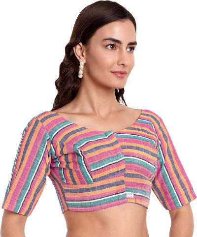 स्ट्राइप्स किंवा ब्लॉक डिझाइन मल्टी कलर ब्लाऊज. हे सरळ रेषांमध्ये किंवा चौकोनी ब्लॉक्समध्ये रंग असलेले ब्लाऊज स्लिम लूक देतात. जे सध्या खूप ट्रेंडमध्ये आहे.