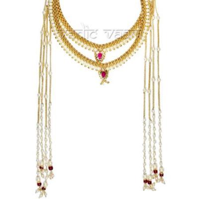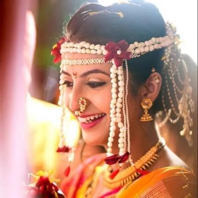 ही एक नव्या पद्धतीची मुंडावळ पाहा. यामध्ये कपाळावर माळांच्या दोन महिरप दिसतात. ठसठशीत दागिन्यांची आवड असणाऱ्यांना हा प्रकार आवडू शकतो.