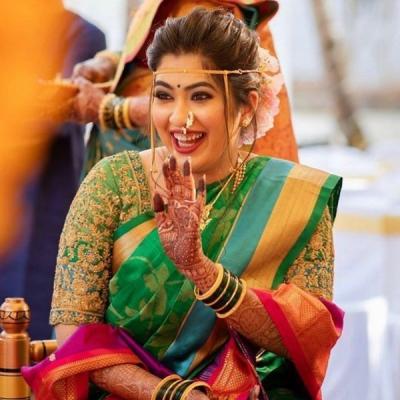मोत्याच्या मुंडावळ्यांपेक्षा आता अशा गोल्डन रंगाच्या मुंडावळ्यांना जास्त पसंती मिळत आहे.