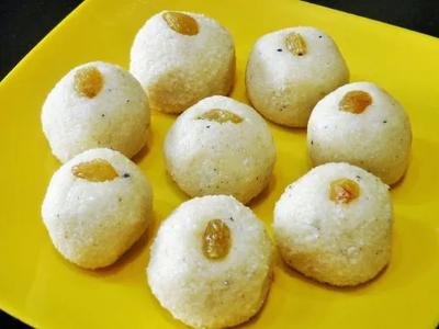 प्रसादासाठी नारळाचे लाडू केले जातात. काही घरी हे लाडू अगदी मऊ केले जातात. आजकाल डेसिकेटेड कोकोनटचे लाडूही केले जातात. सुक्या खोबर्याचे आणि ओल्या नारळाचे विविध प्रकारे लाडू केले जातात.