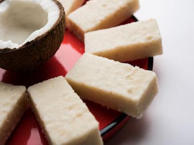 ताज्या नारळाची मस्त मऊ अशी बर्फी केली जाते. त्यात काही जणं गुलाबाच्या पाकळ्या घालतात तर काही जण बटाटाही घालतात. चवीला छान लागतात आणि करायला सोप्या असतात. खोबर्याचीही बर्फी केली जाते.