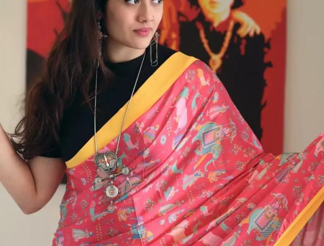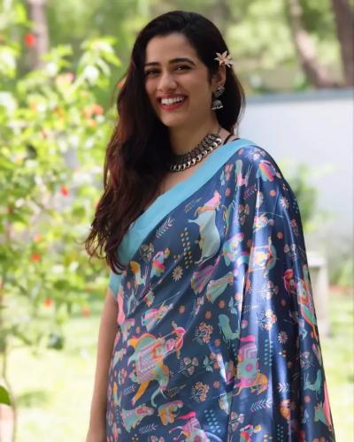 पारंपारीक साड्यांसोबतच ती शिफॉन, ऑर्गेन्झा आणि लिनन सारख्या फॅब्रिकच्या साड्या देखील सहजतेनं कॅरी करते.