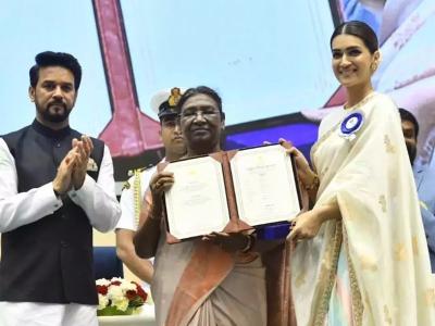 तर मिमी या चित्रपटासाठी क्रिती सेनन हिलाही सर्वोत्तम अभिनेत्रीचा पुरस्कार मिळाला. यावेळी क्रितीही पांढऱ्या रंगाच्या साडीमध्ये अतिशय ग्रेसफूल दिसत होती.
