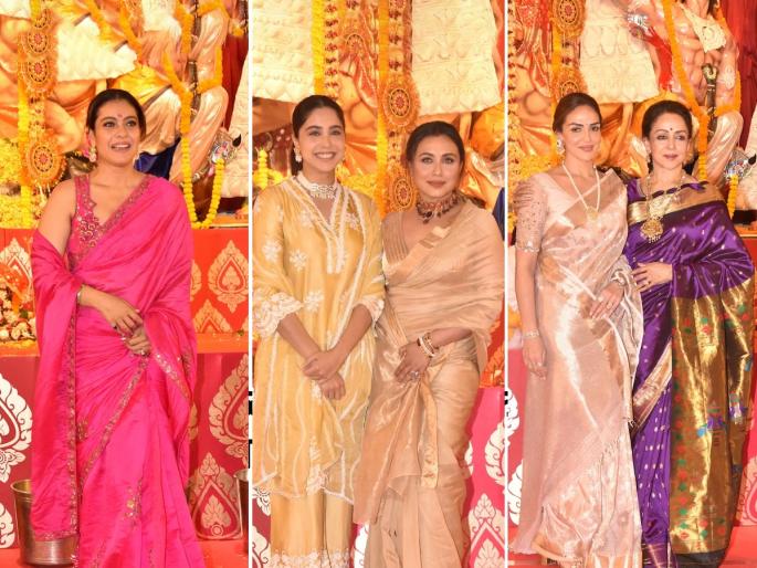 1 / 7बंगालमध्ये नवरात्रीच्या दिवसात दुर्गापुजेला अनन्य साधारण महत्त्व असते. त्यातही दुर्गाष्टमीचा दिवस विशेष महत्त्वाचा असतो. म्हणूनच बॉलीवूडच्या अनेक सौंदर्यवती या दिवशी दुर्गापुजेच्या दर्शनाला आवर्जून जातात. 2 / 7बंगाली ब्यूटी सुश्मिता सेन तिच्या दोन्ही मुलींसोबत दुर्गापुजेला गेली होती. त्यावेळी तिने गुलाबी रंगाची सुंदर बांधणी साडी नेसली होती. तिथे तिने हातात धुनी घेऊन पारंपरिक धुनूची नृत्यही केले.3 / 7काजोलनेही यंदा दुर्गापुजेसाठी चमकदार गुलाबी रंगाची साडी नेसली होती. काजोलही दुर्गापुजा सहसा कधीच चुकवत नाही.4 / 7काजोलप्रमाणेच बॉलीवूडची बबली गर्ल राणी मुखर्जीही मोठ्या उत्साहात होती. तिने गोल्डन रंगाची सुंदर साडी नेसली होती. तिचं गळ्यातलं आणि चेहऱ्यावरचं मोहक हास्य लक्षवेधी ठरलं.5 / 7ड्रिम गर्ल हेमामालिनी कन्या इशा देओल हिच्यासोबत दुर्गा पुजेला गेल्या होत्या. यावेळी हेमा यांनी जांभळ्या रंगाची रेशमी पैठणी नेसली होती. तर इशाने सोनेरी रंगाची साडी नेसली होती.6 / 7'अनुपमा' फेम रुपाली गांगुली हिची दुर्गापुजेतही उपस्थितीही लक्षवेधी ठरली. 7 / 7'अनुपमा' फेम रुपाली गांगुली हिची दुर्गापुजेतही उपस्थितीही लक्षवेधी ठरली.